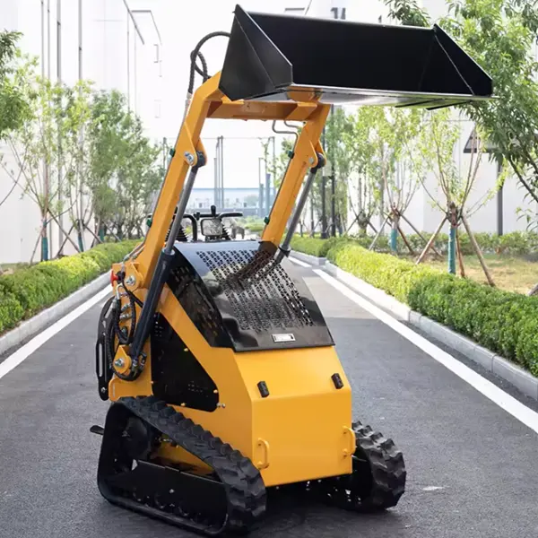 Cada Minicarregadeira Frontal Compacta Minicarregadeira é submetida a um teste simulado de levantamento de carga total de 600 kg por uma hora. A equipe de inspeção verifica se a deformação do braço de elevação permanece ≤2mm para garantir segurança e durabilidade estrutural em campo.